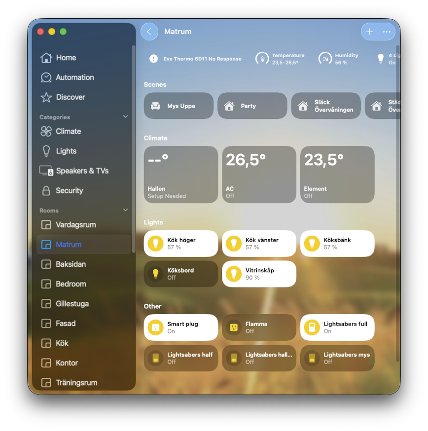 The main thing is that I can control them via the Home app, as you can see I have four settings: full, half, cozy, and Halloween for different modes.