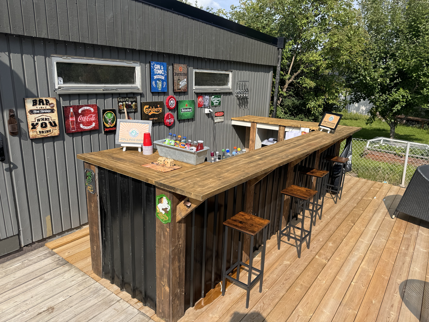 Now the outdoor bar is finished! One beautiful day we want to build a roof for it, of course, but for now this works. Here are some pictures!